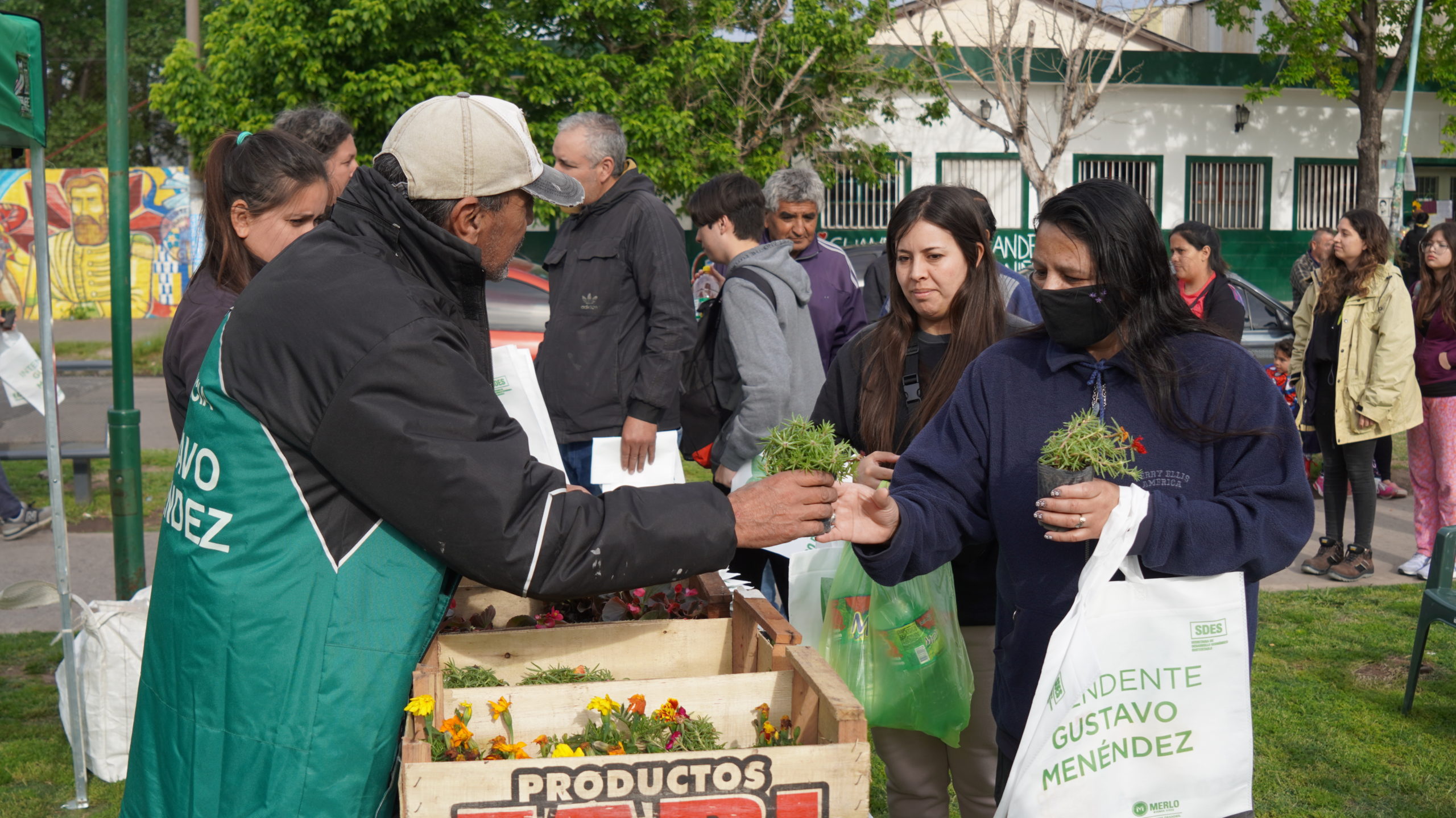 Los merlenses que se acercaron recibieron árboles, plantines y semillas de temporada, a cambio de reciclables limpios y secos. El objetivo es colaborar con el ambiente y fomentar la siembra natural de alimentos en los hogares.