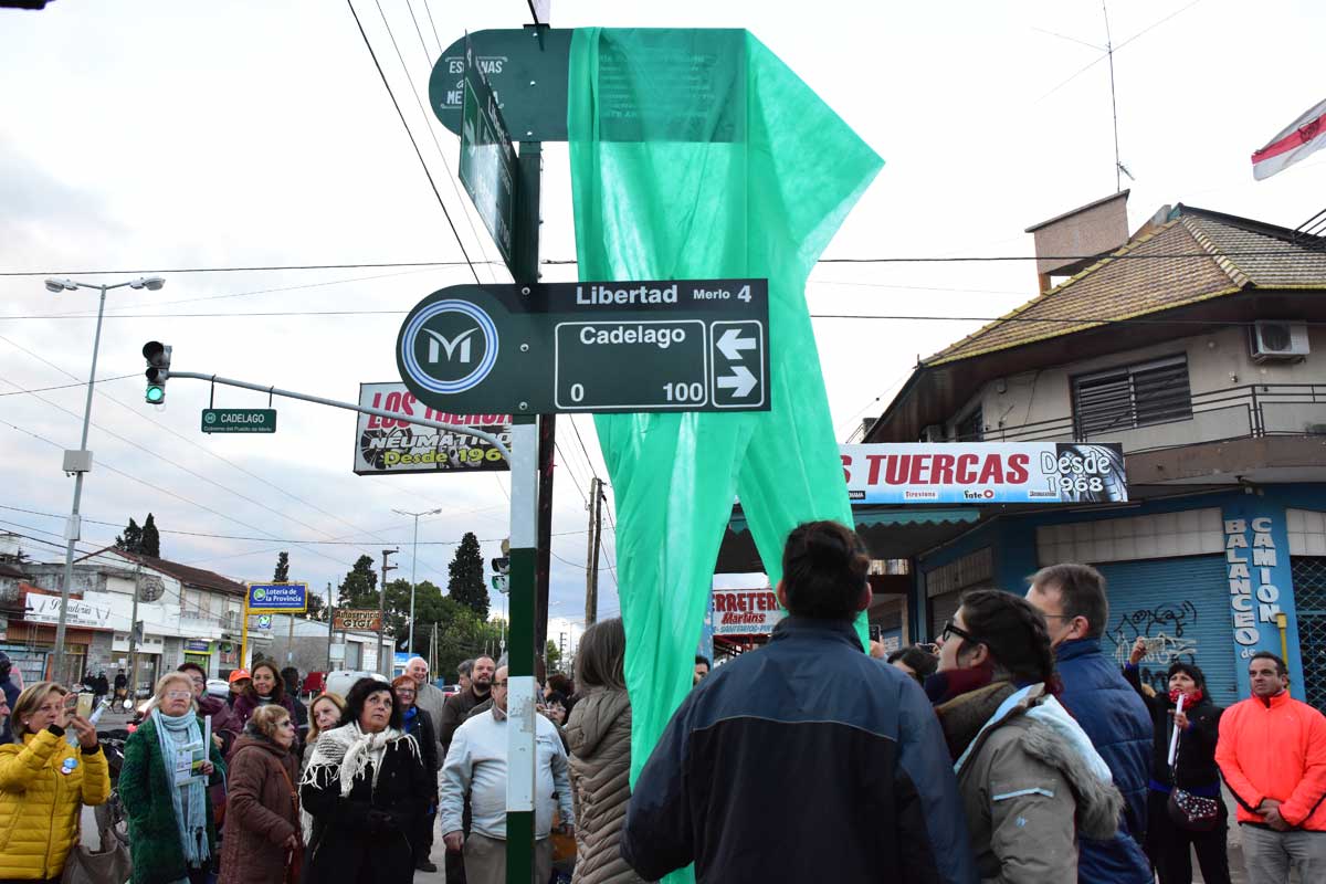 La señalización que homenajea a la docente fue inaugurada en el mismo día de su cumpleaños, y se encuentra ubicada en la intersección de Avenida Eva Perón y Bermejo, en Libertad. Del evento participaron sus familiares, amigos, compañeros del Colegio Ward de Ramos Mejía, compañeros de militancia, y ex alumnos.