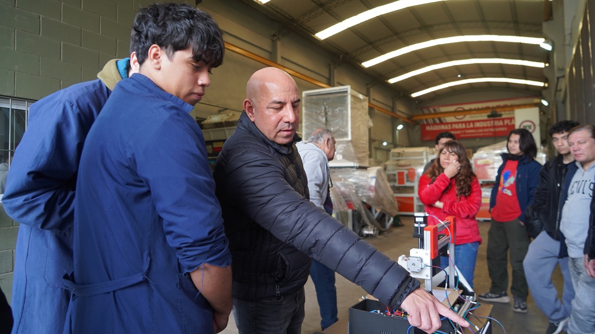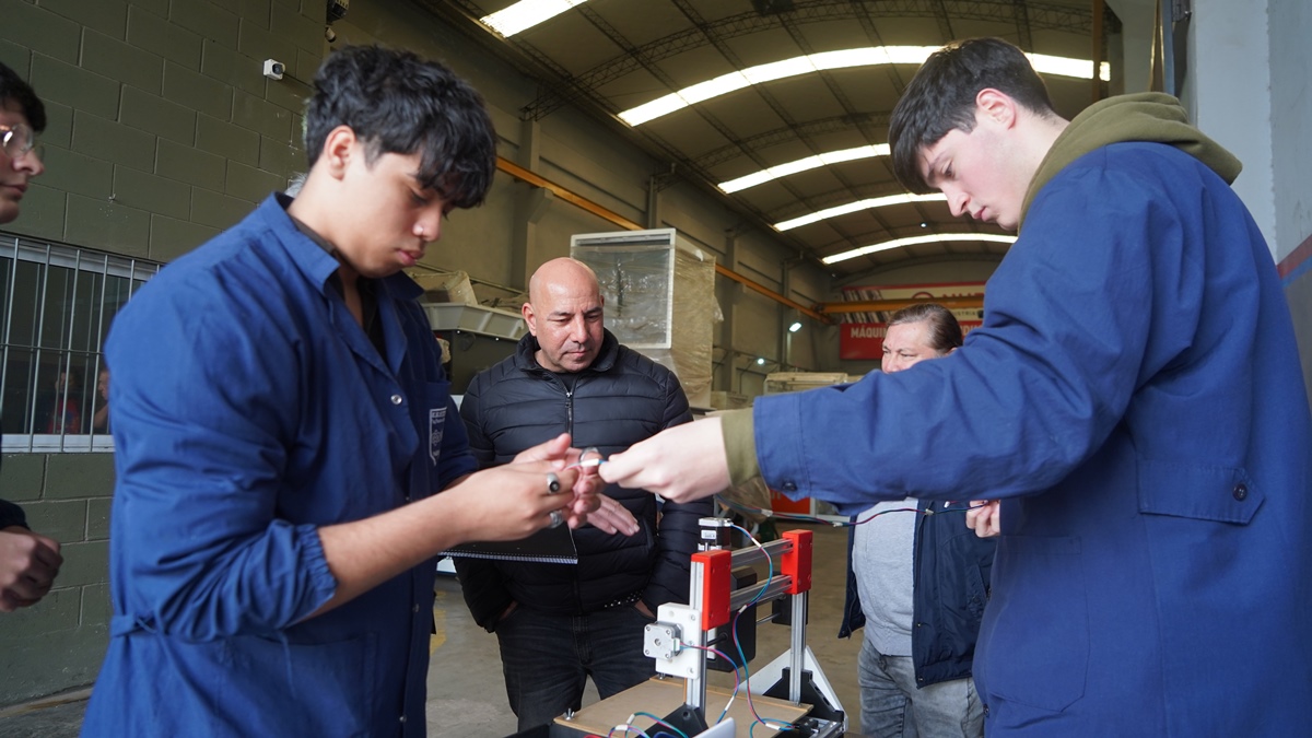 Alumnos de la Escuela Técnica N° 1 visitaron la Metalúrgica Nupieri para mostrarles a sus autoridades sus proyectos de innovación industrial llamados “Fundizona” y “SAM”.