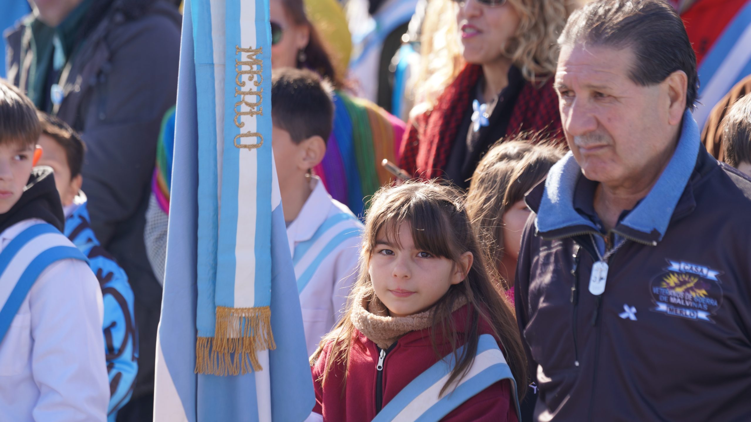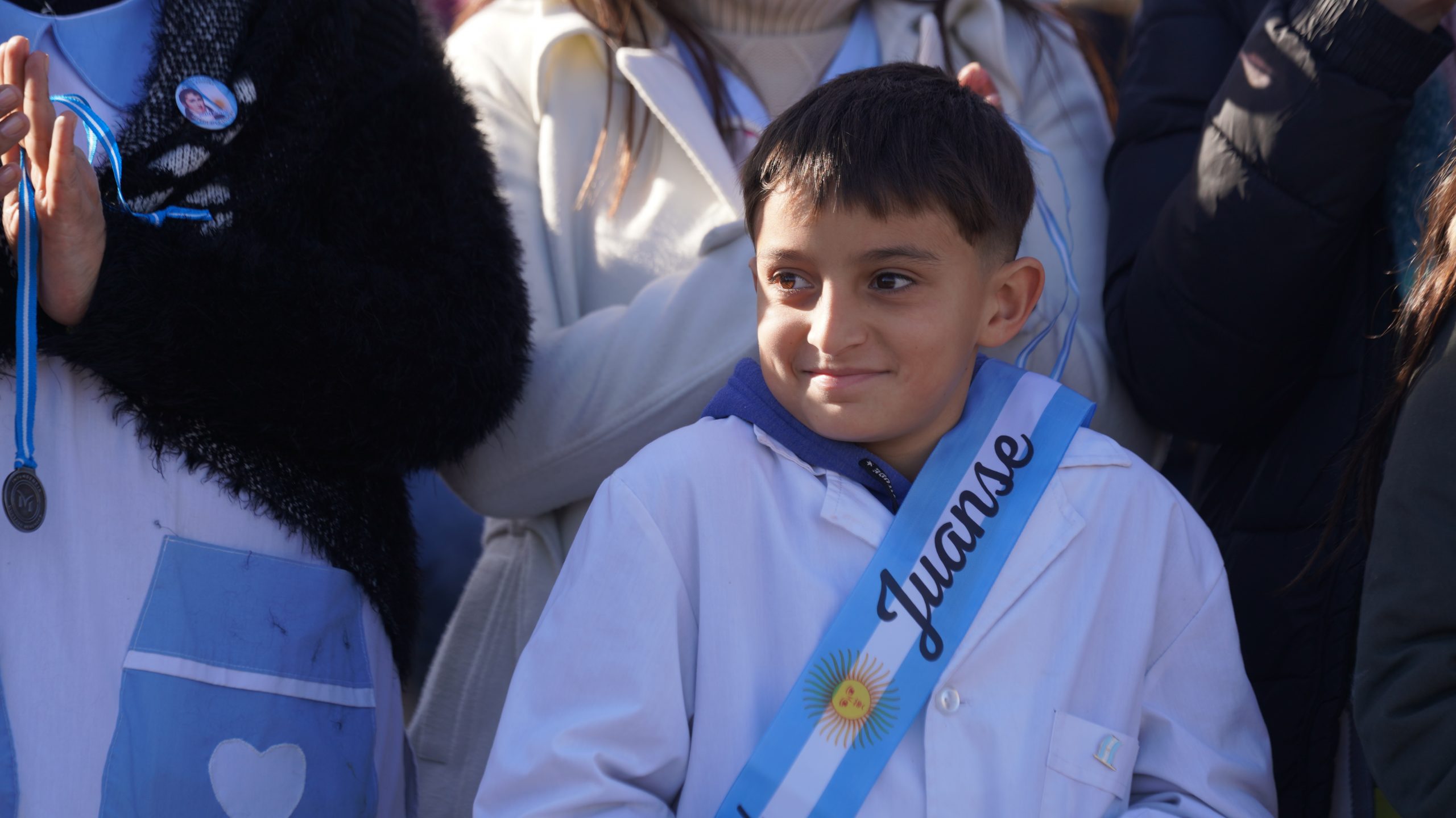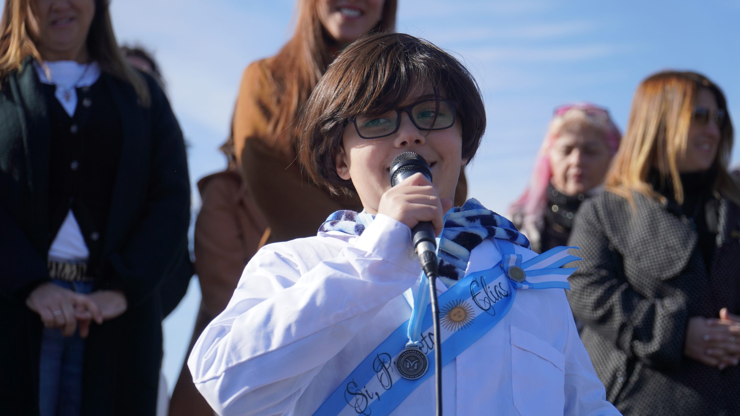 El acto protocolar reunió a la comunidad educativa, a autoridades municipales, y a vecinos y vecinas que fueron espectadores del tradicional homenaje encabezado por el Intendente Gustavo Menéndez.