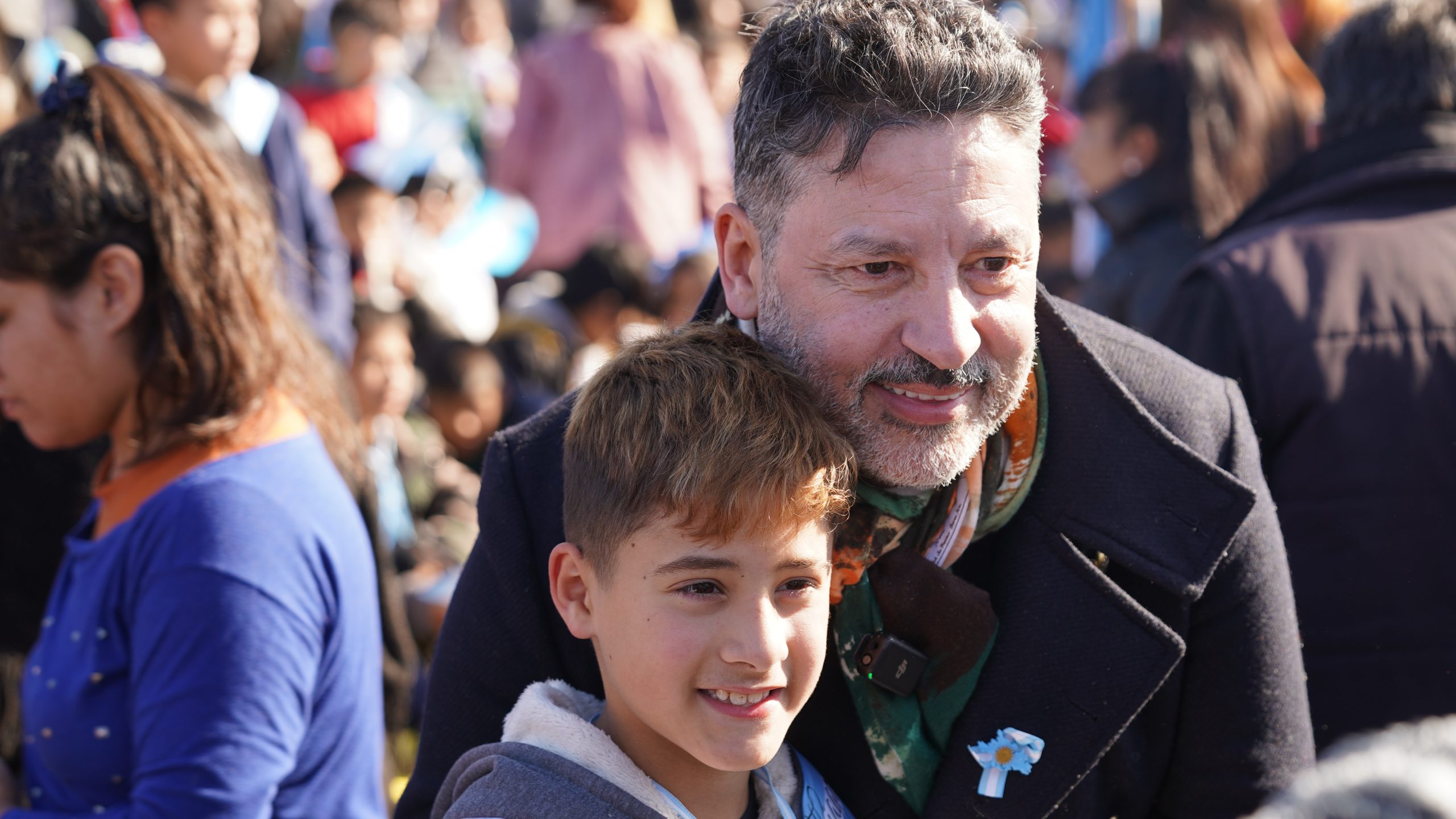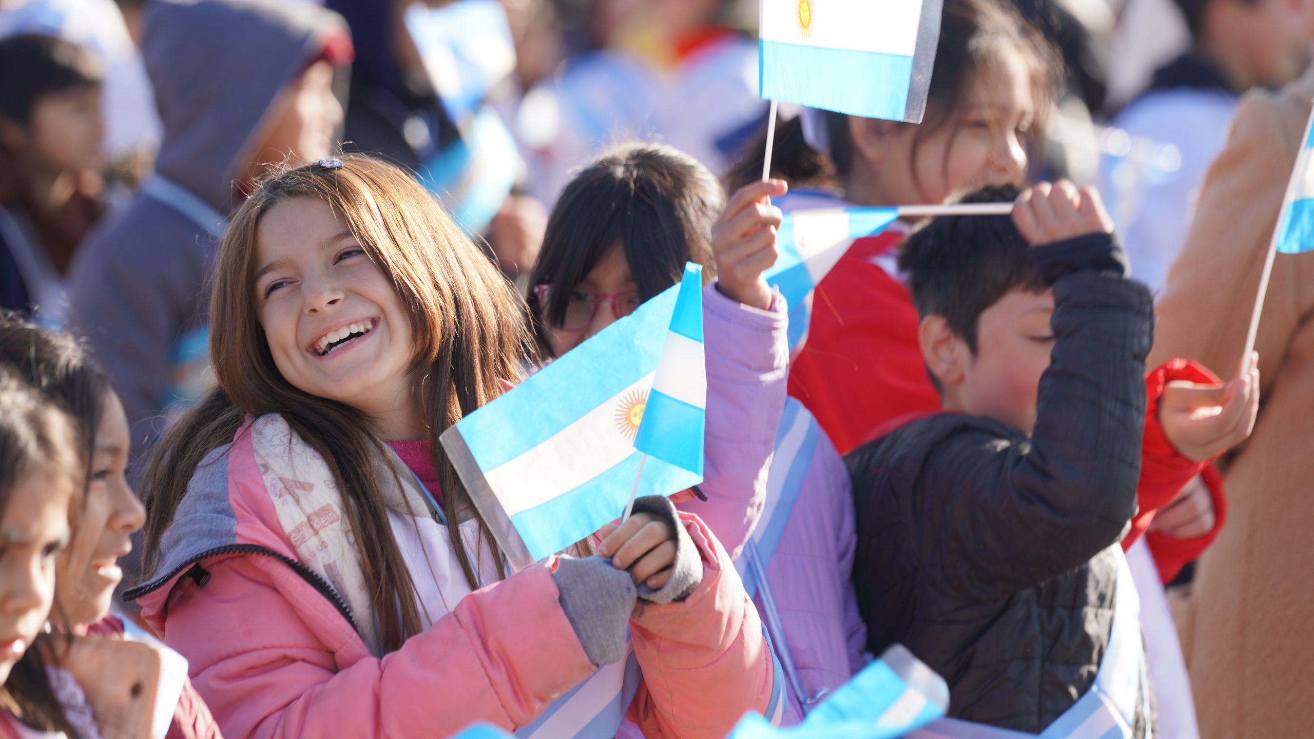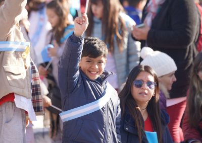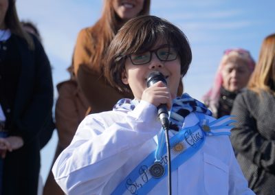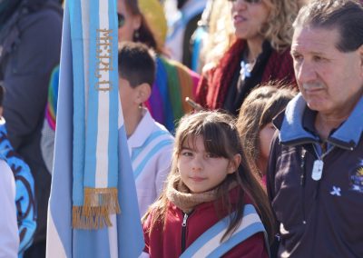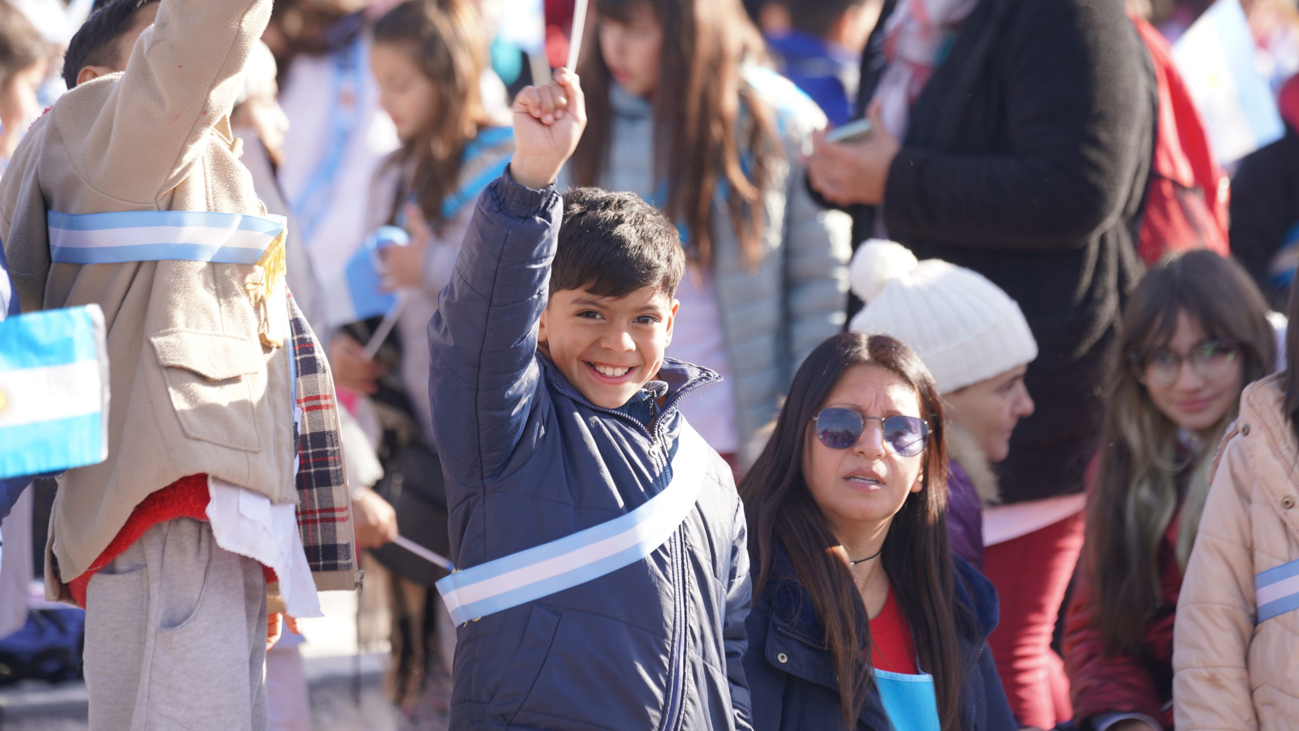 El acto protocolar reunió a la comunidad educativa, a autoridades municipales, y a vecinos y vecinas que fueron espectadores del tradicional homenaje encabezado por el Intendente Gustavo Menéndez.