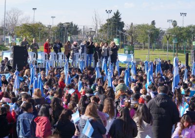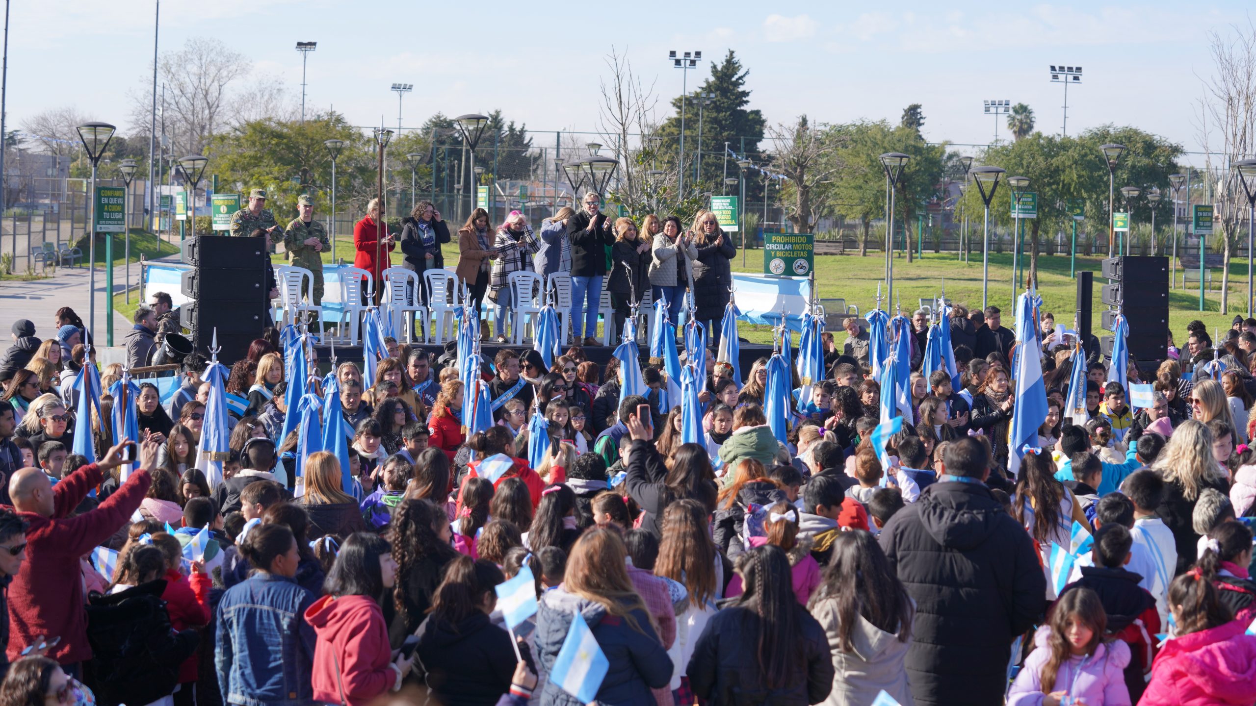 Más de 2700 alumnos y alumnas de 4to año de escuelas de Merlo celebraron el Día de la Bandera y realizaron la promesa a la insignia nacional en el Parque de la Unidad Nacional en Libertad.