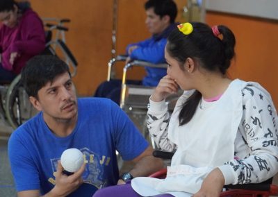 La boccia es un juego de estrategia y precisión que practican personas con discapacidades que afectan las habilidades motoras. Se juega de forma individual, por parejas o equipos sobre una cancha rectangular, donde los competidores tratan de lanzar sus bochas lo más cerca posible de la pelota blanca que sirve de objetivo, a la vez que intentan alejarlas de sus rivales.