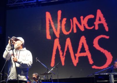 Por su parte el líder de Kapanga, Martín “el mono” Fabio, expresó: “Estos eventos son para que los jóvenes conozcan la causa y así surjan inquietudes, porque a veces la historia queda alejada y es necesario recordar lo que vivimos aquellas personas que crecimos en dictadura”. Y concluyó: “Ni olvido, ni perdón, nunca más”.