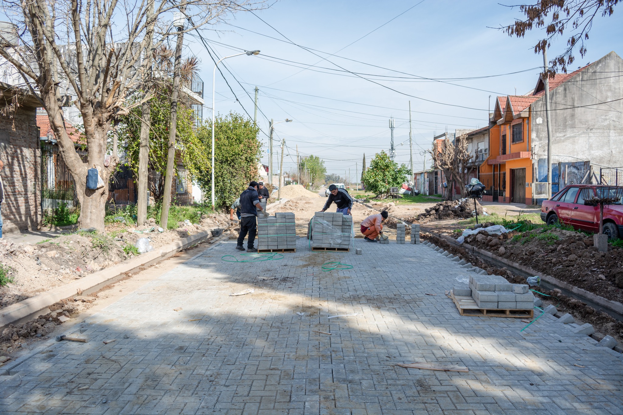El personal realizó la construcción de calzadas con bloques de hormigón premoldeado con cordones cuneta de hormigón simple de 7 metros de ancho. En este caso, se completaron tres nuevas cuadras sobre Av. De la Merced.