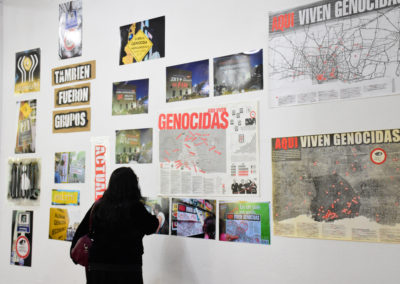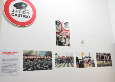 El Grupo de Arte Callejero realizó una intervención artística en donde mostraron parte del recorrido que han llevado a cabo durante los últimos 20 años, en los que han interpelado a la sociedad mediante su arte. Son obras conformadas por afiches y carteles viales que tienen relación con la memoria y la visibilización de los escraches de los años ’90.