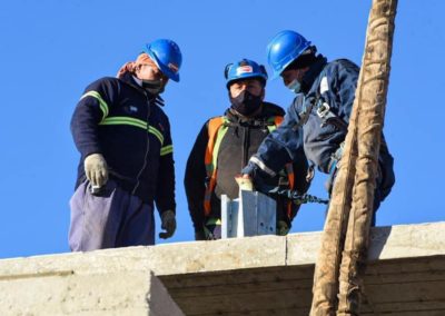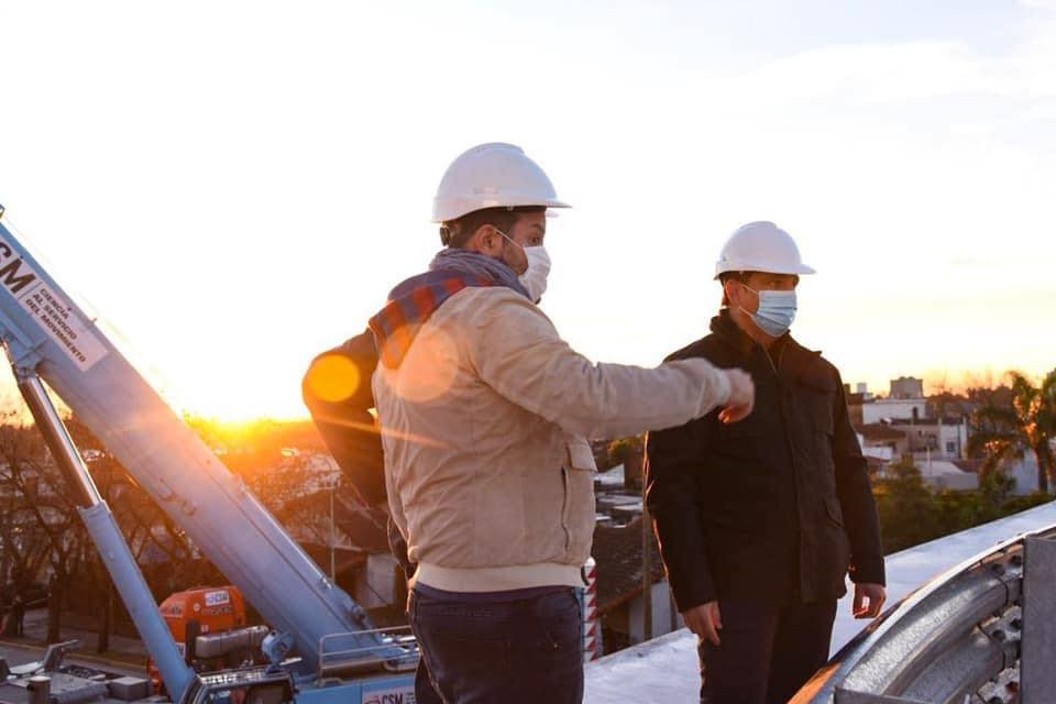 El intendente Gustavo Menéndez estuvo presente en la jornada junto al Presidente de Trenes Argentinos para supervisar la obra y las tareas. Además, conversó con los vecinos que se acercaron para presenciar el momento en que quedaba finalizado el ensamble.