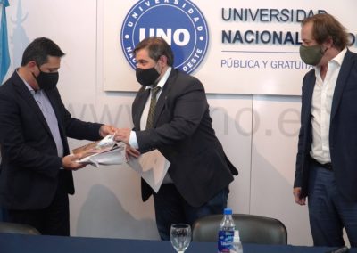 Por su parte, el Rector de la UNO, Roberto Gallo, manifestó: “Es un gusto firmar este convenio. La Universidad lo que aporta es personal técnico que pueda prestar servicio para la evaluación de impacto ambiental, de esta manera contribuimos al desarrollo de la sociedad merlense en su conjunto”.