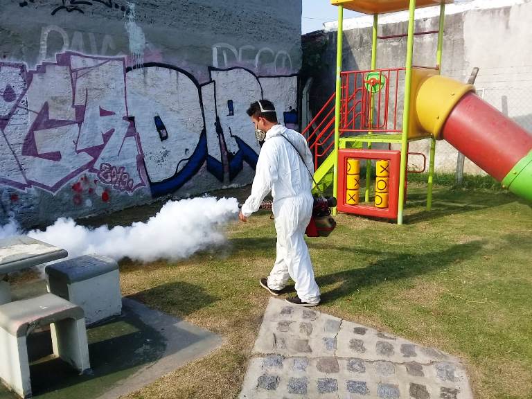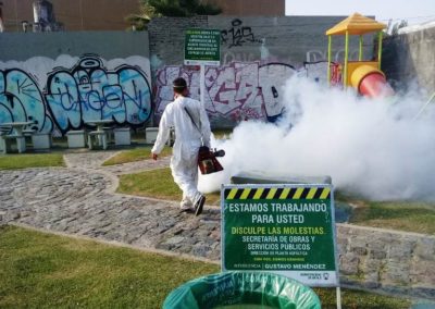 La Secretaría de Obras y Servicios Públicos de Merlo continúa con las tareas de fumigación en espacios públicos de todo el distrito.
