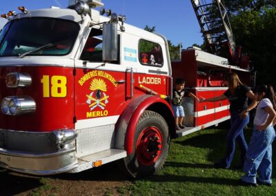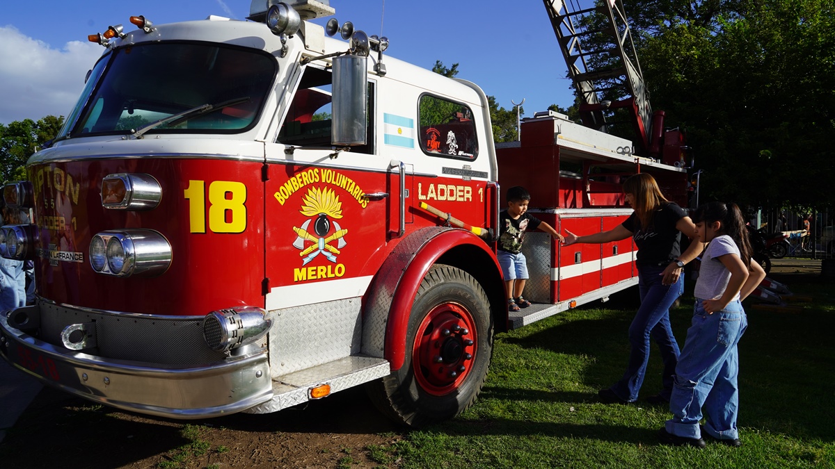 Participaron los Bomberos Voluntarios y la Casa de Veteranos de Malvinas de Merlo, que compartieron material histórico y actividades con el público.