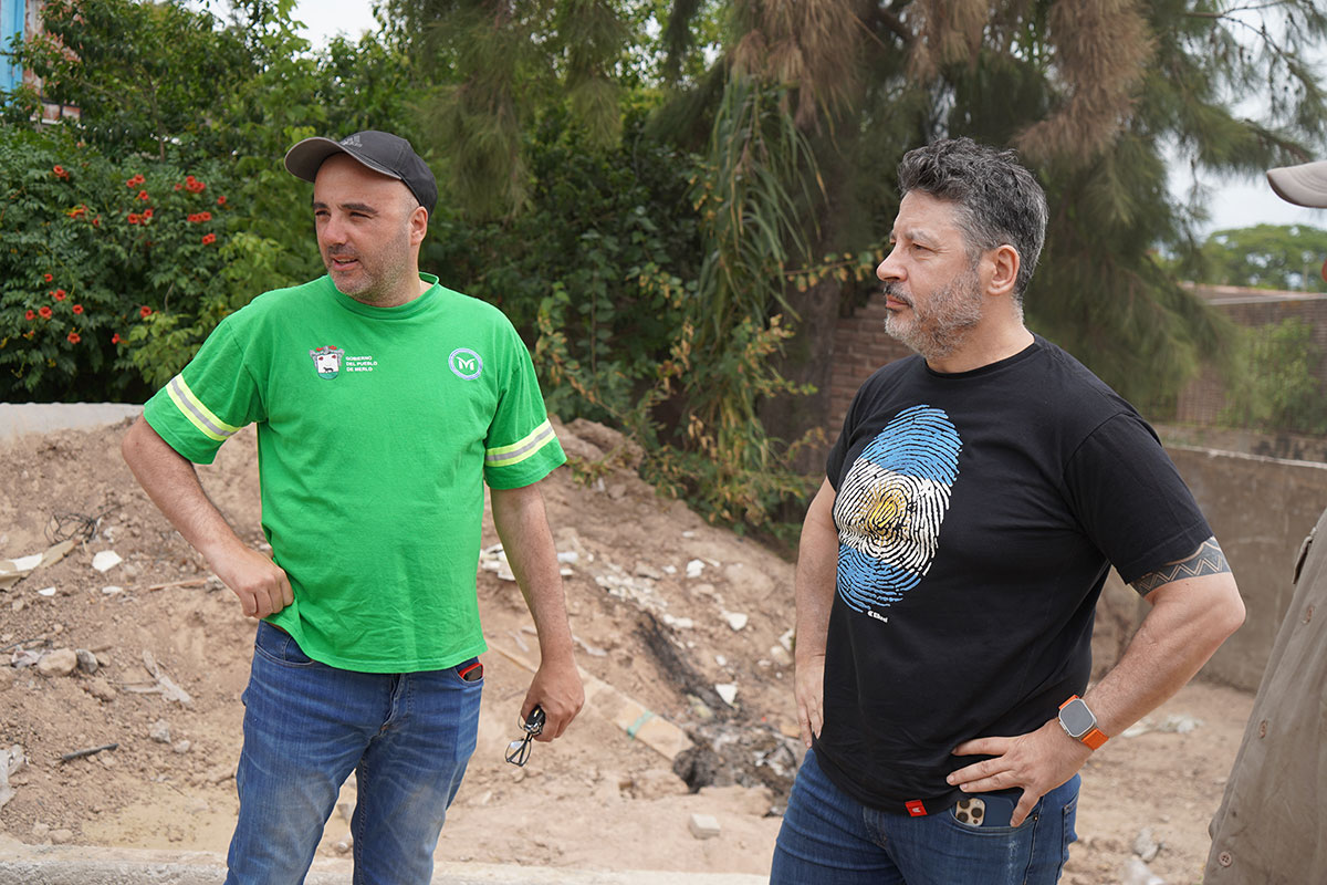 La Secretaría Delegaciones de Merlo avanza en la construcción del puente de calle Arenales. Menéndez visitó la obra, que se enmarca en la tercera etapa de entubamiento y canalización del Arroyo Torres.