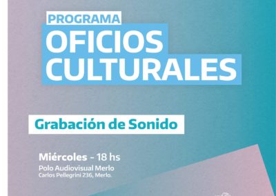 Se trata de talleres trimestrales orientados a la formación de jóvenes de 16 a 18 años en oficios artísticos y culturales. Forman parte del Programa “Oficios Culturales” que impulsa el Instituto Cultural de la Provincia de Buenos Aires.