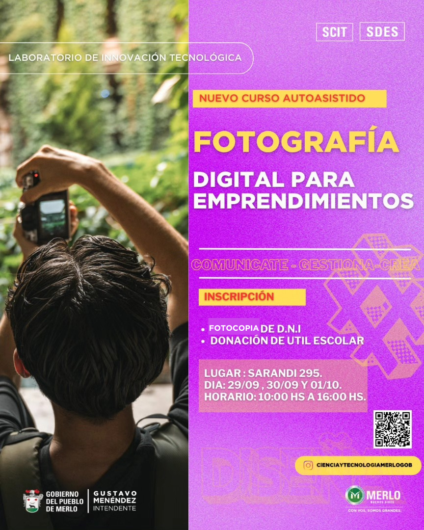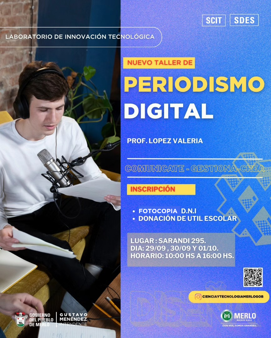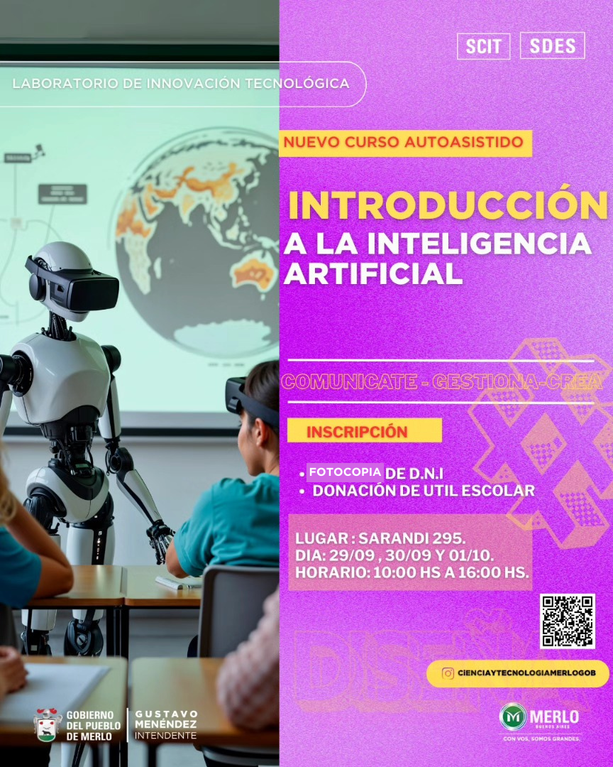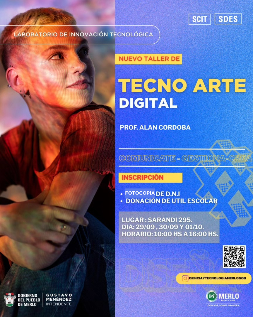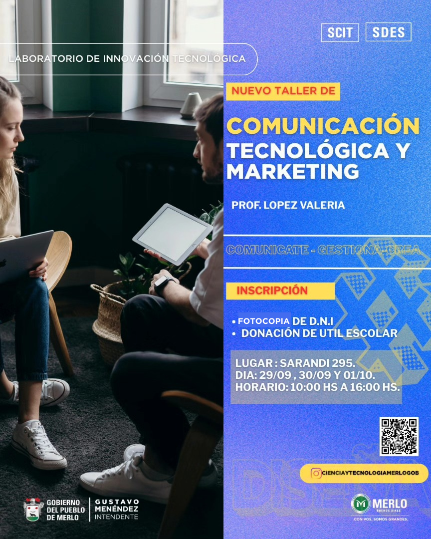 Merlenses pueden inscribirse a los nuevos cursos y talleres tecnológicos gratuitos que impulsa la Subsecretaría de Ciencia, Innovación Tecnológica y Cooperación Internacional. Desde el Lunes 29 de septiembre al Miércoles 1 de octubre, en Sarandí 285, de 10 a 16 hs.