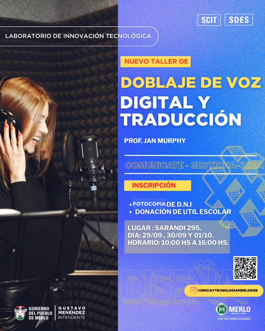 - Doblaje de voz Digital y Traducción – Jueves de 14:30 a 15:50 hs (8 clases)