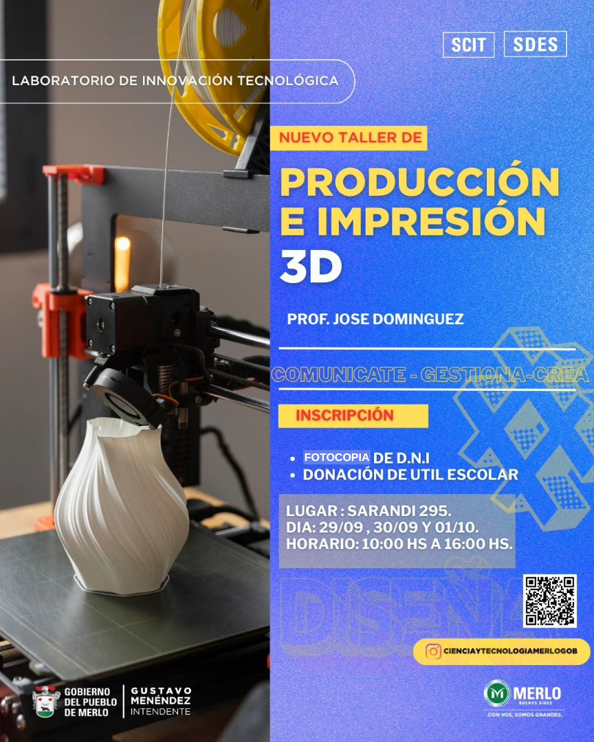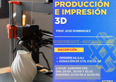 - Producción e Impresión 3D – Jueves de 14:30 a 15:50 hs (8 clases)