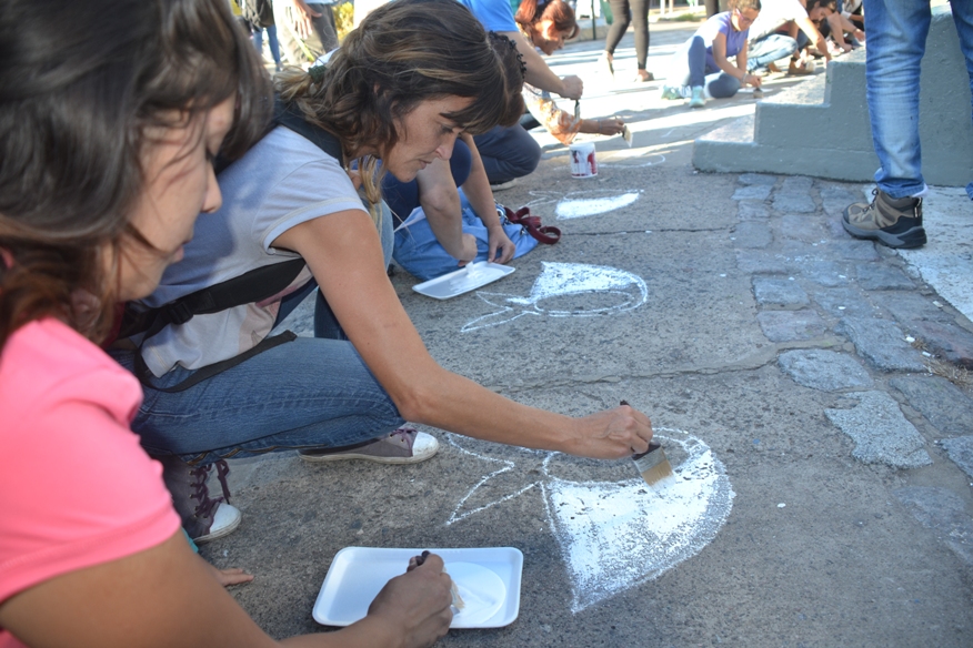 La actividad consistió en pintar pañuelos blancos, símbolo emblemático de la lucha de las organizaciones de los derechos humanos, alrededor de la plaza en el marco del Mes de la Memoria. El evento contó con la participación de vecinos, funcionarios y el Intendente Gustavo Menéndez.