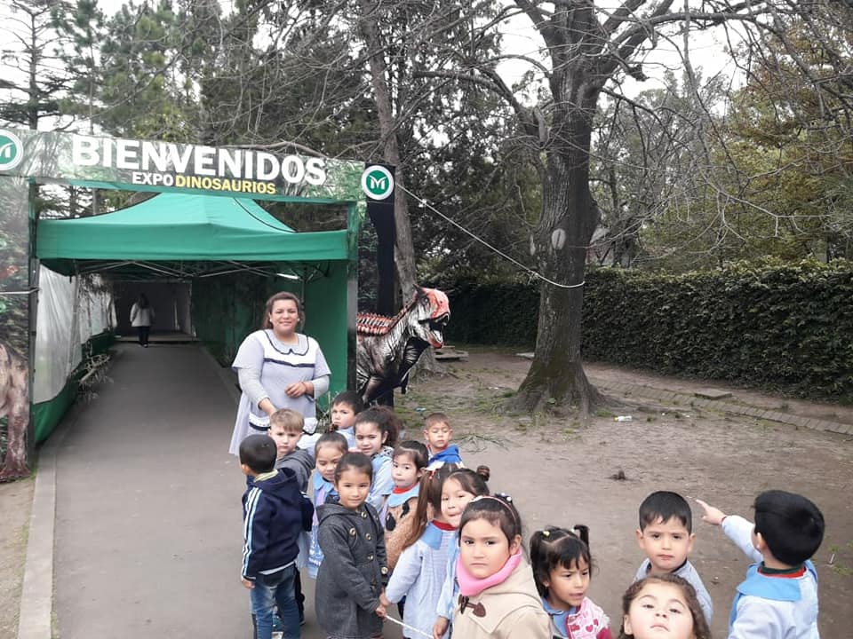 La Secretaría de Desarrollo e Integración Social de Merlo organizó una visita a la Expo Dinosaurios de El Tejadito para los chicos que integran el Jardín Comunitario “El Confite”, del Barrio El Vivero, de Pontevedra.