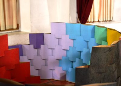 El encuentro, que estuvo dividido en dos partes, comenzó con un taller en el que participaron chicos de la Escuela Nº51 de nuestro distrito que, con la ayuda del artista, construyeron un trabajo tridimensional con ladrillos de papel.