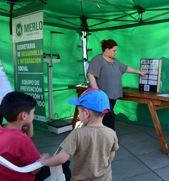 El operativo se desarrolló por la tarde con el objetivo de que los niños y sus padres puedan concurrir a la salida de la escuela, para obtener controles de salud y asesoramiento en las diferentes políticas y beneficios sociales que brinda el Gobierno del Pueblo de Merlo.