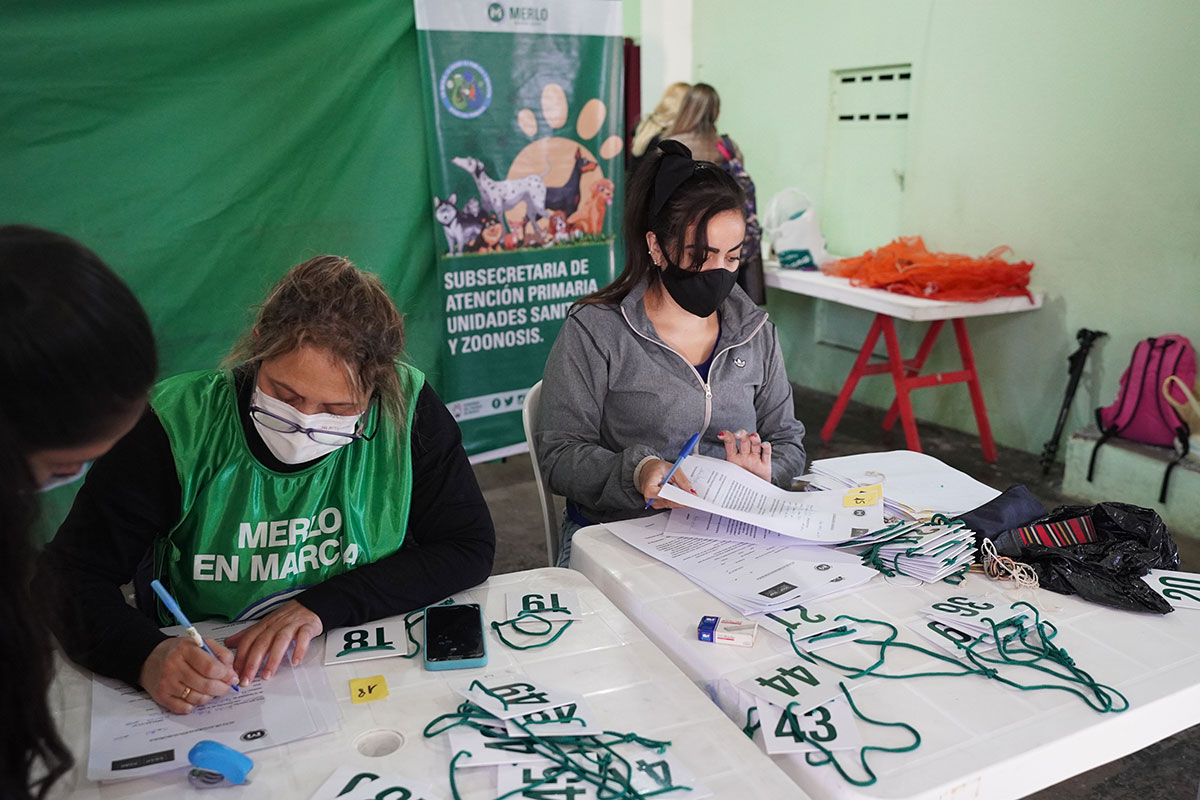 La Dirección de Zoonosis de Merlo realizó una jornada de castraciones en el Club Cervantes (Fleming y Caaguazú). El objetivo es acercar este servicio a los barrios del distrito para que los vecinos y vecinas puedan esterilizar a sus mascotas en cercanía sus hogares y de forma gratuita. También se aplicaron vacunas antirrábicas.