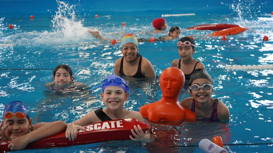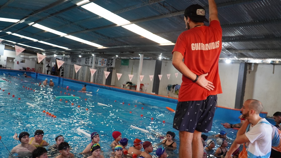 Este año el programa municipal tiene lugar en el Natatorio de AMGAA en el Club Laureles, donde estudiantes de la Escuela de Guardavidas realizan sus prácticas. Dos contingentes de más de 100 chicos iniciaron las clases del segundo cuatrimestre.