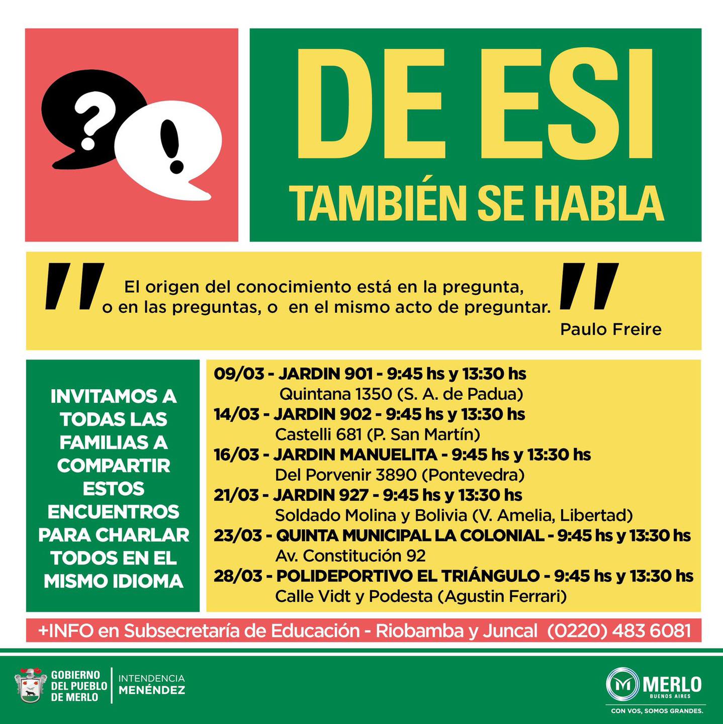 La Secretaría de Educación de Merlo llevará a cabo jornadas sobre ESI para las familias durante el mes de marzo. El objetivo de las mismas será definir y entender cómo la Educación Sexual Integral está presente en los diferentes ámbitos sociales.