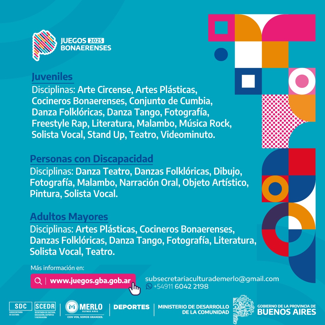 ✅ Podés elegir entre diferentes disciplinas deportivas y culturales, en las categorías: juveniles, personas con discapacidad y adultos mayores.