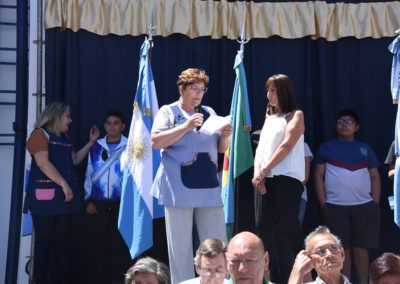 La secretaria de Educación deportes y Recreación, Silvana Zahana junto con el jefe distrital de Educación, Hugo Rosá, encabezaron el acto protocolar en conmemoración por los 25 años de la Escuela Primaria “Florencio Molina Campos”, ubicada en Pontevedra.