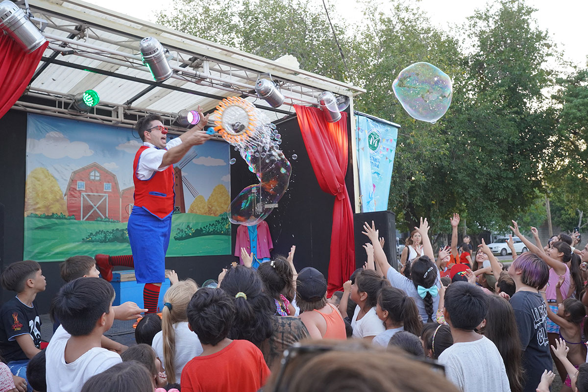 La Secretaría de Cultura acercó la propuesta a la Plaza de la Escuela N° 33, Merlo Norte, donde los niños y niñas disfrutaron de obras de teatro, shows de magia, castillos inflables, espectáculos y música de forma gratuita.