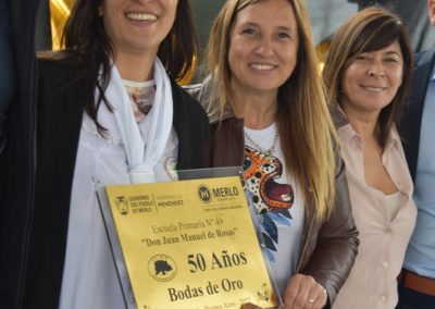 Karina Menéndez estuvo presente en la conmemoración por el 50 aniversario del colegio “Don Juan Manuel de Rosas”, en Pontevedra. La Secretaria de Educación, Deportes y Recreación, Silvana Zahana y el jefe distrital de Educación, Hugo Rosá, también participaron del acto.