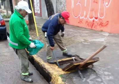Las cuadrillas de empleados se dispusieron en distintos puntos del centro de la ciudad para reforzar las tareas de limpieza en la zona. Estos trabajos se realizan en la totalidad del casco urbano para garantizar el escurrimiento y aprovechamiento de la infraestructura hidráulica.