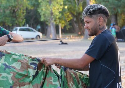 La jornada comenzó en horas de la mañana, donde los integrantes del programa municipal “Merlo Inclusivo” realizaron actividades de manualidades, realizaron el armado de carpa y recolectaron maderas para el fogón. Además, hubo un espacio de actividades artísticas junto a las familias.