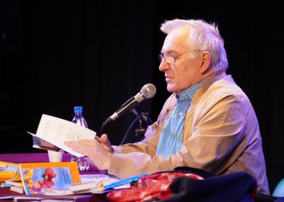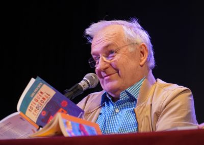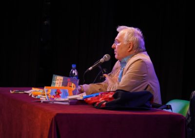 El escritor, músico y compositor Luis Pescetti, presentó su libro “Botiquín Emocional” en el marco de una charla sobre “Literatura y emociones en la infancia” en el Teatro Municipal de Merlo.