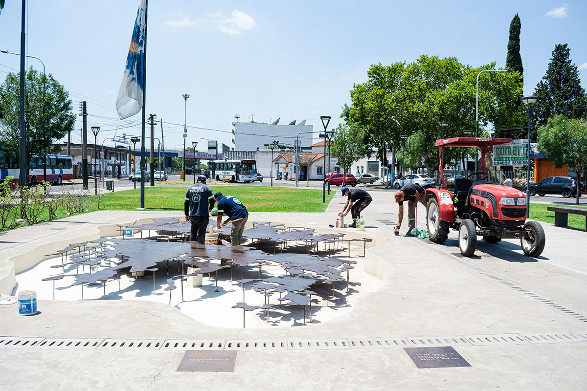 Los trabajadores de Obras Públicas llevan adelante la renovación de la pintura del lugar, así como también el corte de césped, limpieza y mantenimiento para conservar en óptimas condiciones el material vegetal del predio.