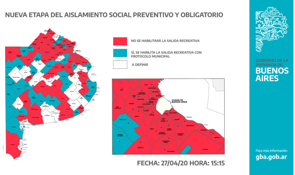 Accedé y descargá el mapa actualizado de municipios donde se aplicará el permiso de salidas de esparcimiento en la provincia de Buenos Aires, en esta nueva etapa del Aislamiento Social, Preventivo y Obligatorio.