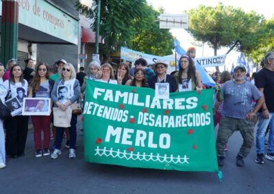 Primero, tuvo lugar una movilización desde la Plaza Néstor Kirchner hasta la Plaza Fundador Don Francisco de Merlo, con paradas para recordar a los detenidos-desaparecidos de Merlo.