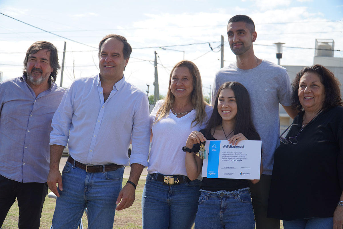 La Intendenta de Merlo, Karina Menéndez, junto al Ministro de Desarrollo Territorial y Hábitat Santiago Maggiotti hicieron entrega de 16 nuevas viviendas del Barrio Procrear en Parque San Martín.