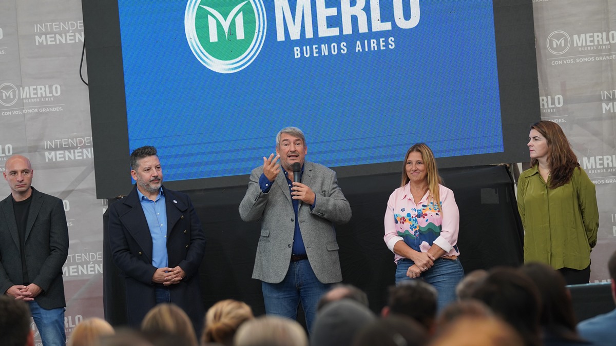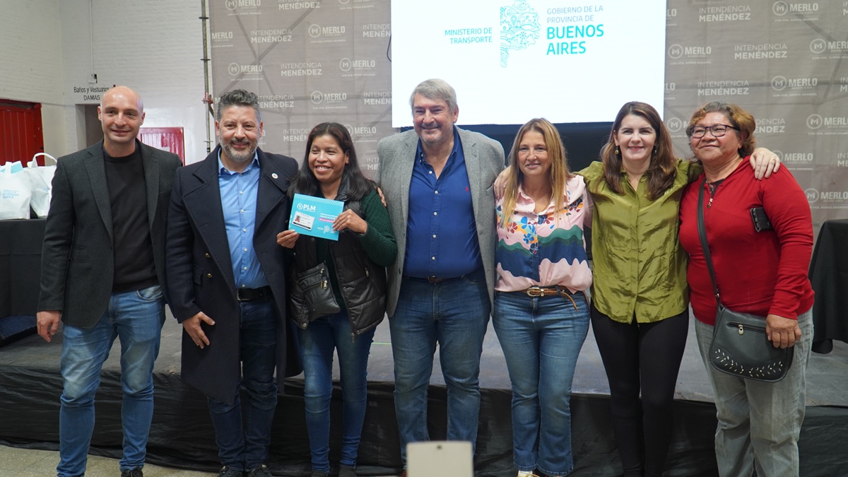 La Intendenta de Merlo, Karina Menéndez junto a Gustavo Menéndez y el Ministro de Transporte, Jorge D´Onofrio encabezaron una nueva entrega de pases multimodales en el Club Independiente.