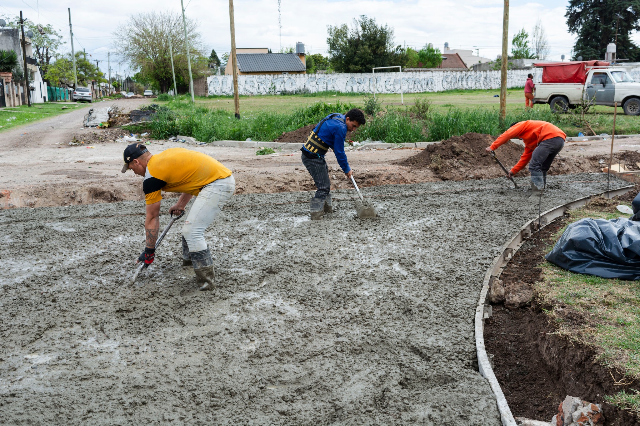 La Secretaría de Obras y Servicios Públicos trabaja en la pavimentación de la calle Marconi entre Lincoln y Mario Bravo del Barrio La Blanquita.
