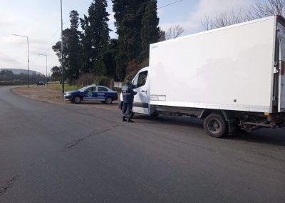 En Merlo Norte, el operativo tuvo lugar en el Camino de la Ribera, donde se encuentra prohibida la circulación de camiones de gran porte. De esta forma, los oficiales garantizaron el normal desarrollo del tránsito vehicular y obtener una mayor seguridad vial.