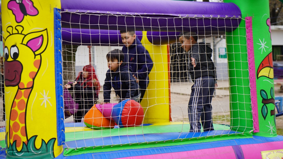 Los niños y las familias de Merlo disfrutaron de una tarde con actividades recreativas en el Polideportivo El Triángulo. Hubo clases de zumba, inflables y cine infantil, organizados por la Subsecretaría de Deportes.