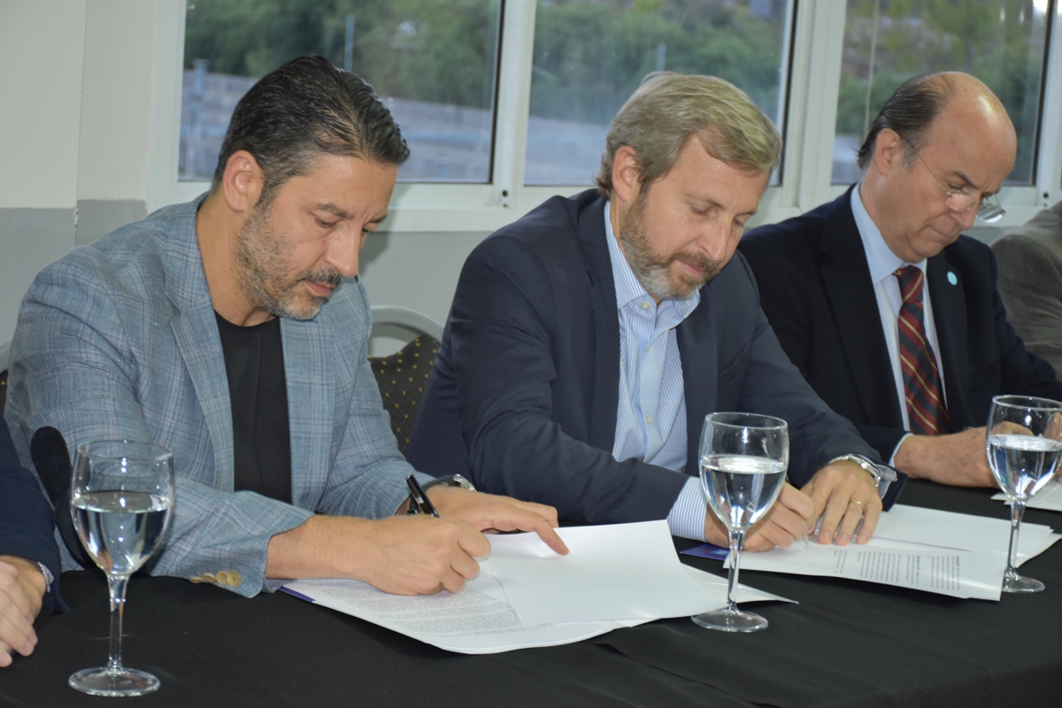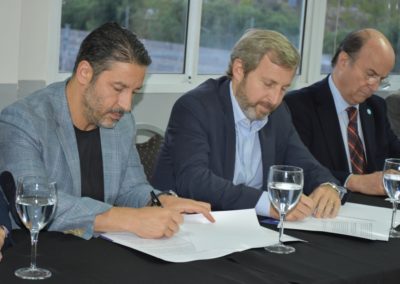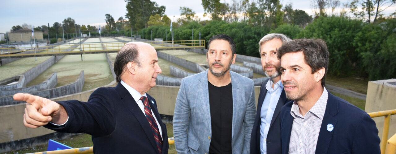 El Ministro del Interior, Obras Públicas y Viviendas de la Nación, Rogelio Frigerio, acompaño al jefe comunal de Merlo en la firma del convenio con la empresa prestadora de agua potable y desagües cloacales en un acto realizado en la planta de AySA ubicada en la localidad de Agustín Ferrari.