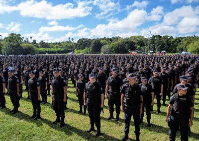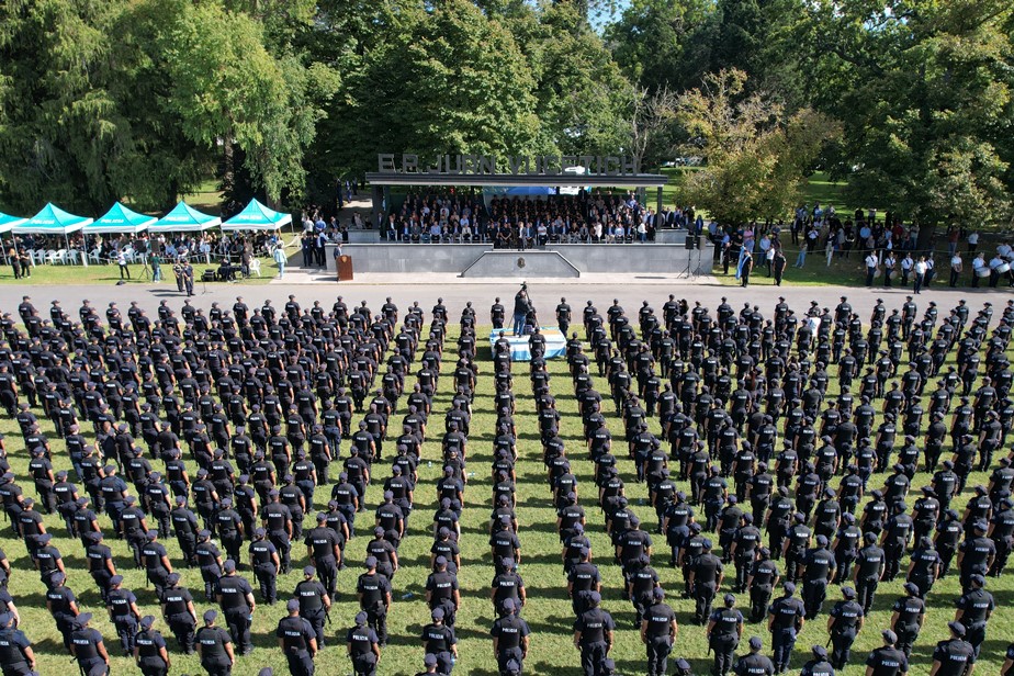 Durante la jornada, que se desarrolló en la Escuela de la Policía “Juan Vucetich” de Berazategui, junto al ministro Javier Alonso, el Gobernador también tomó juramento de fidelidad a la función policial a 1.100 cadetes egresados de la Policía de la Provincia.