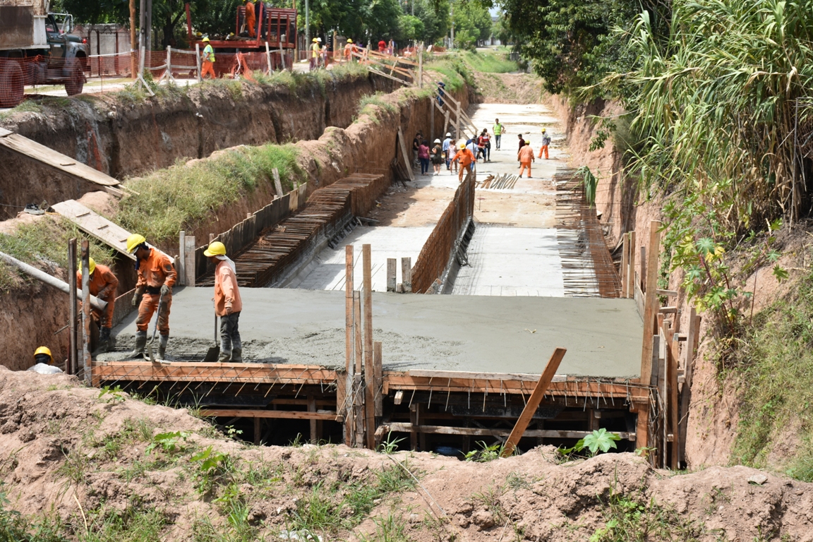Busto detalló que se está realizando “una estructura de hormigón de hierro en el entubado del Arroyo, de alturas variables y arriba de ese conducto una avenida de dos manos con cantero central con iluminación central en el cantero”.