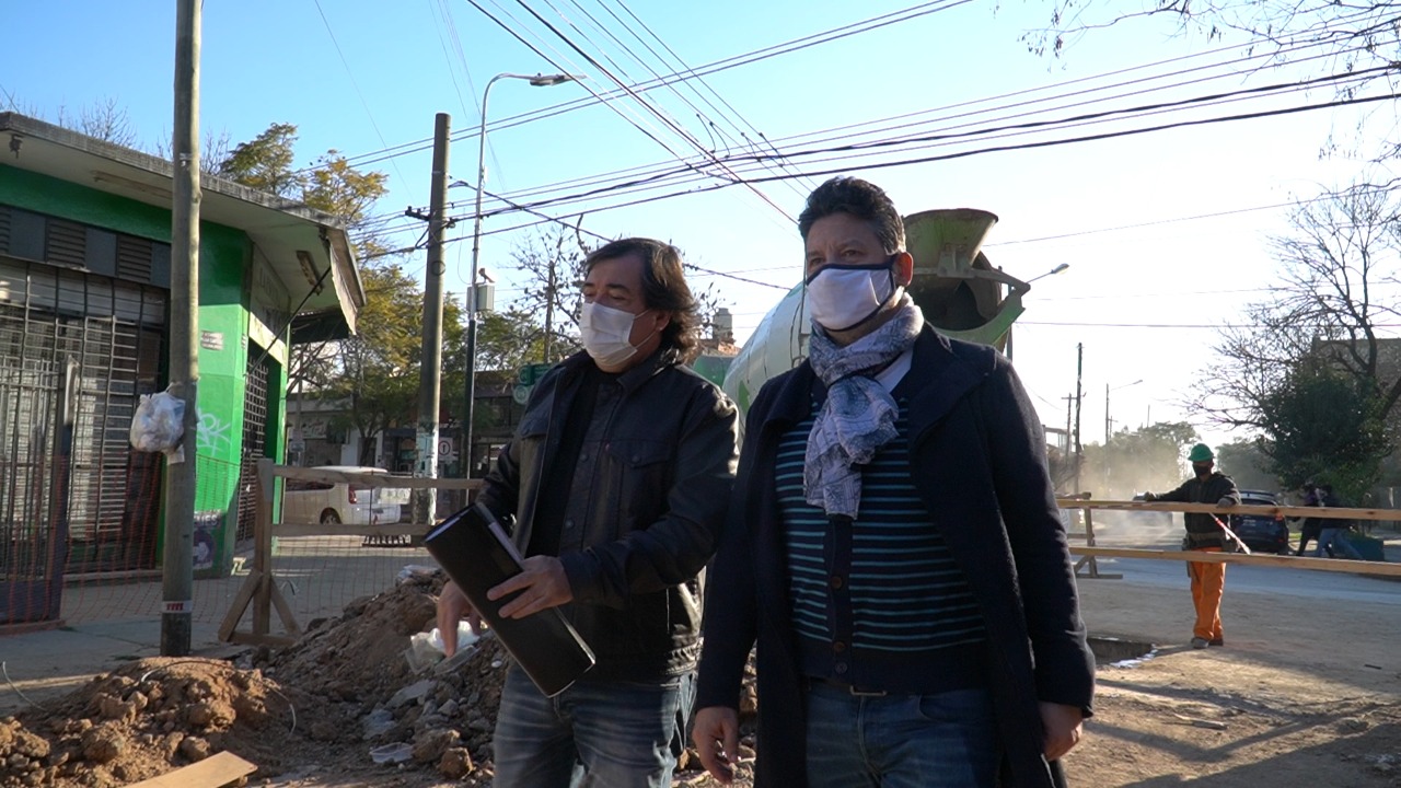 El intendente Gustavo Menéndez junto al Secretario de Obras y Servicios públicos Guillermo Busto, estuvo presente en la Avenida Salguero e Hipólito Irigoyen, donde se ejecuta esta importante obra para los vecinos de Merlo que se encuentra en la etapa final de la obra.
