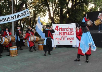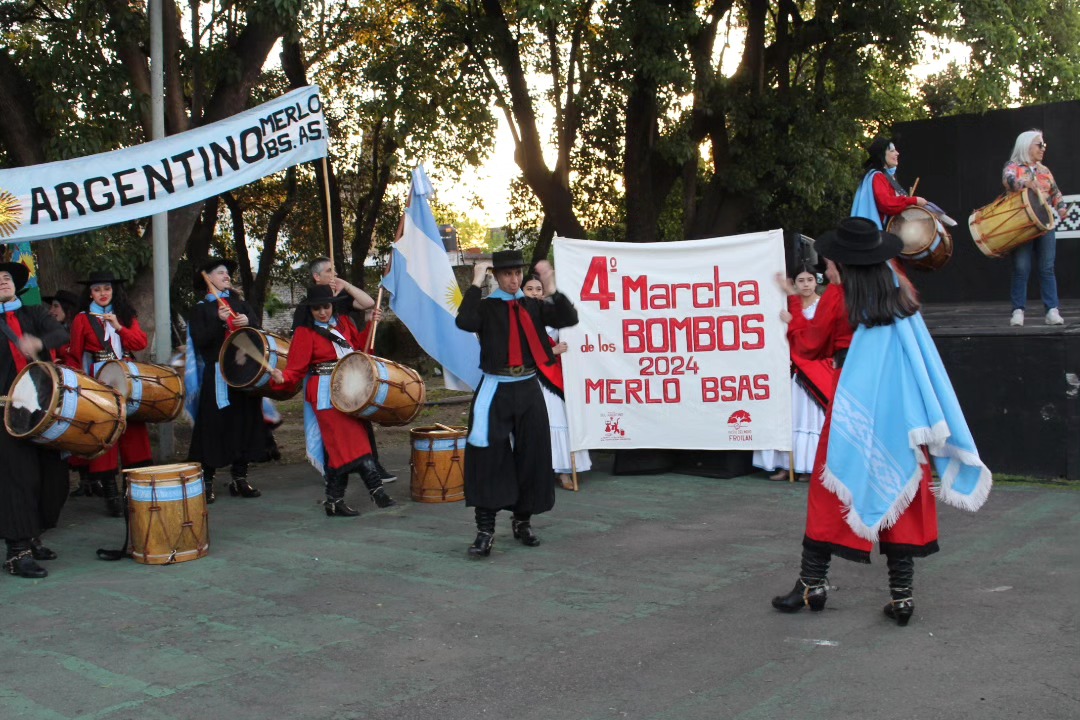 La 4ta Marcha de los Bombos en Merlo fue organizada por la Subsecretaría de Cultura, la Fundación Patio del Indio Froilán y el grupo folklórico Sol Argentino. Acompañaron el evento la Concejal Cecilia Argüello y el Centro Cultural La Ronda Legüera.