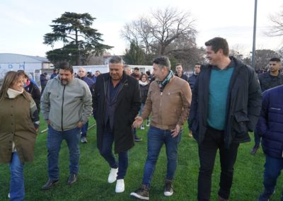 Gustavo Menéndez junto al presidente de la Asociación del Fútbol Argentino (AFA), Claudio “Chiqui” Tapia y el presidente del Club Deportivo Merlo, Guillermo Gutiérrez, recorrieron las instalaciones del Predio “El Remanso”en Parque San Martín, donde asisten más de 800 chicos y chicas.