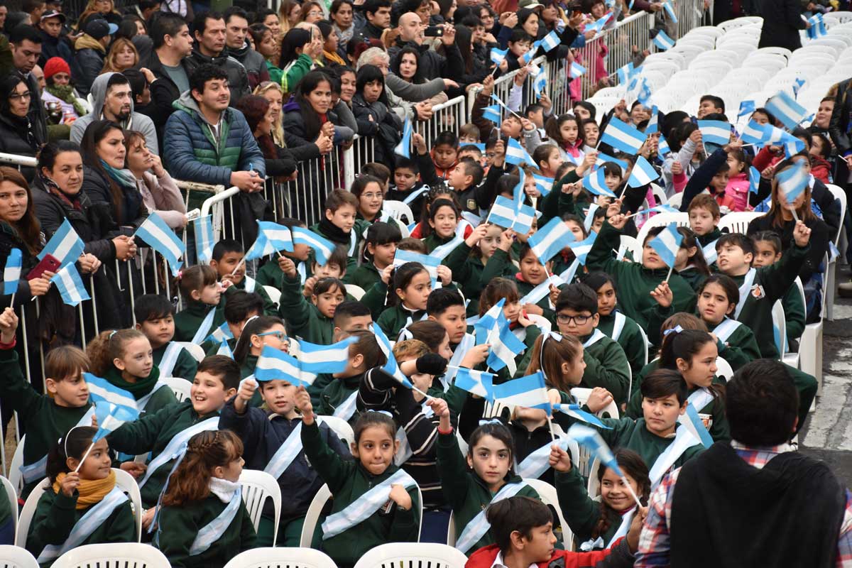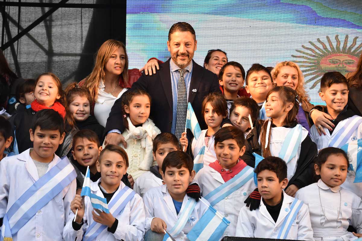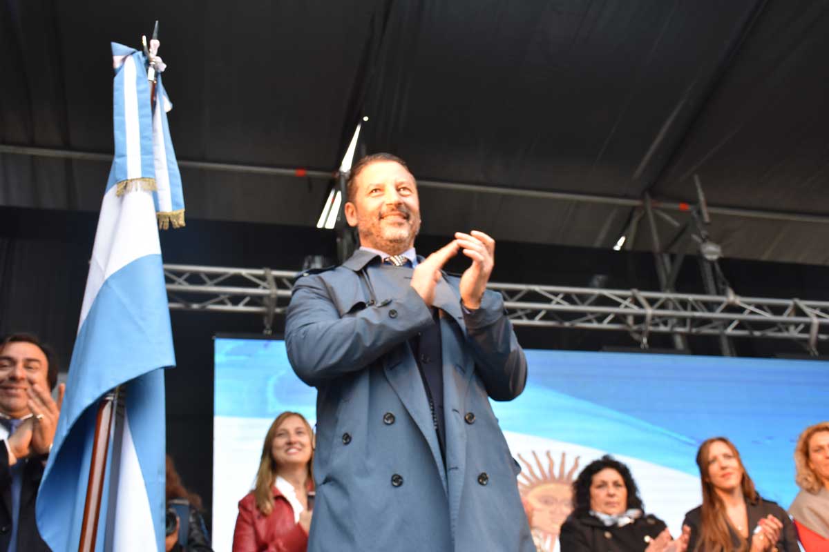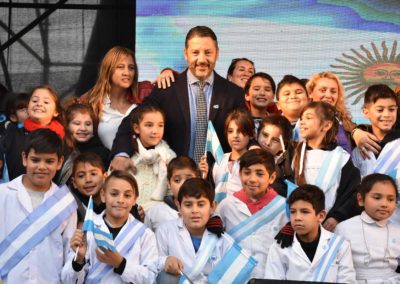 El Intendente Gustavo Menéndez encabezó el acto central por el Día de la Bandera en la ciudad de San Antonio de Padua y tomó juramento a los alumnos de las diferentes escuelas del distrito en una mañana teñida de celeste y blanco.