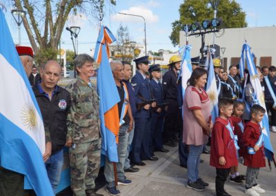 El acto protocolar tuvo lugar en la Plaza Héroes de Malvinas, con la presencia del intendente Gustavo Menéndez y la participación de veteranos de guerra, autoridades y vecinos. Luego, se inauguró el Museo Malvinas.