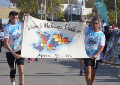 El evento, libre y gratuito, se dividió en dos modalidades: 10 Km individual para adultos y 1 Km participativa kids. Participaron equipos de running, vecinos y vecinas merlenses, personas con discapacidad, grupos de la tercera edad, como así también niños acompañados de sus padres y los propios veteranos de Malvinas.